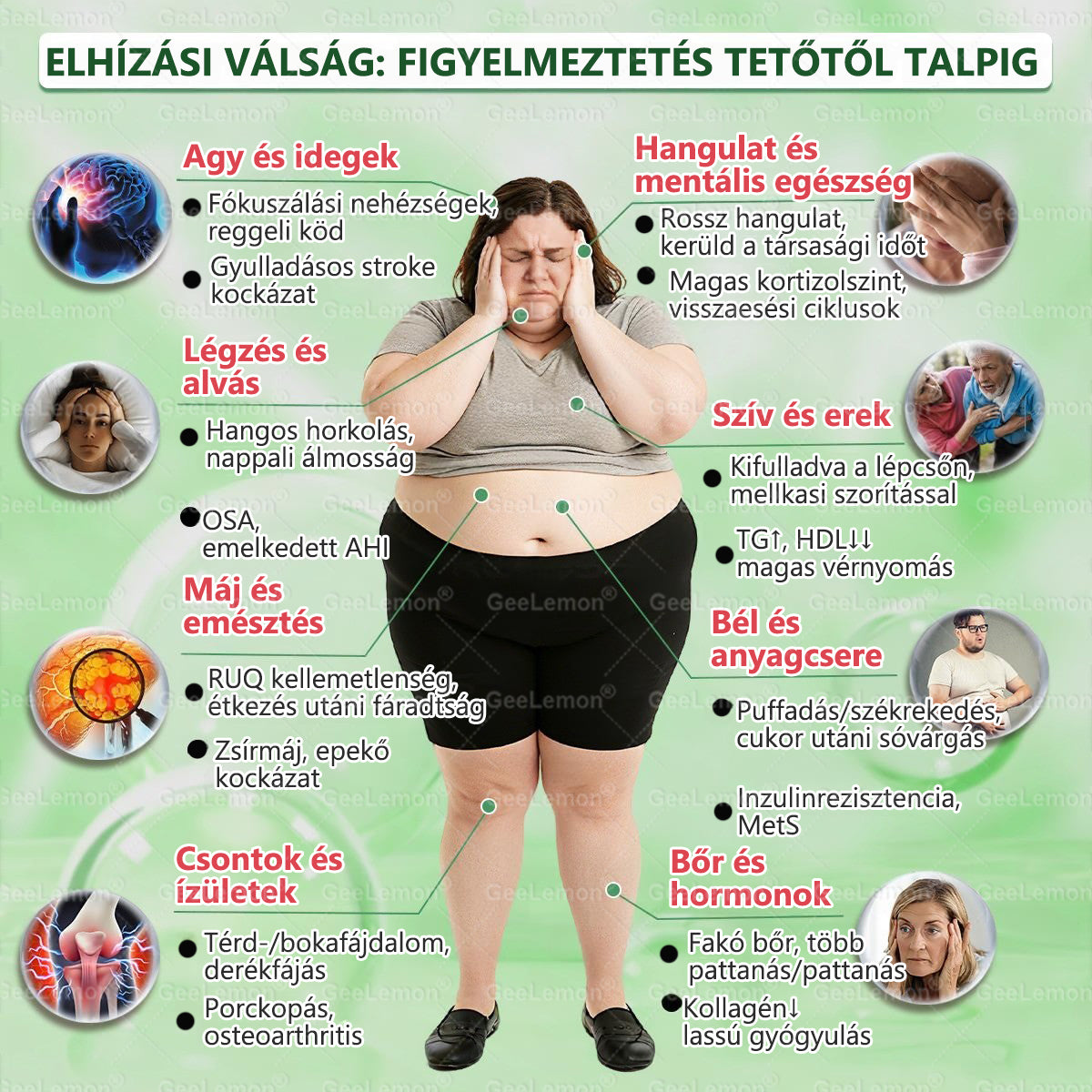 - Daganatos betegségek kockázata: 50%-kal növeli a rák kialakulásának esélyét a normál testsúlyú emberekhez képest.