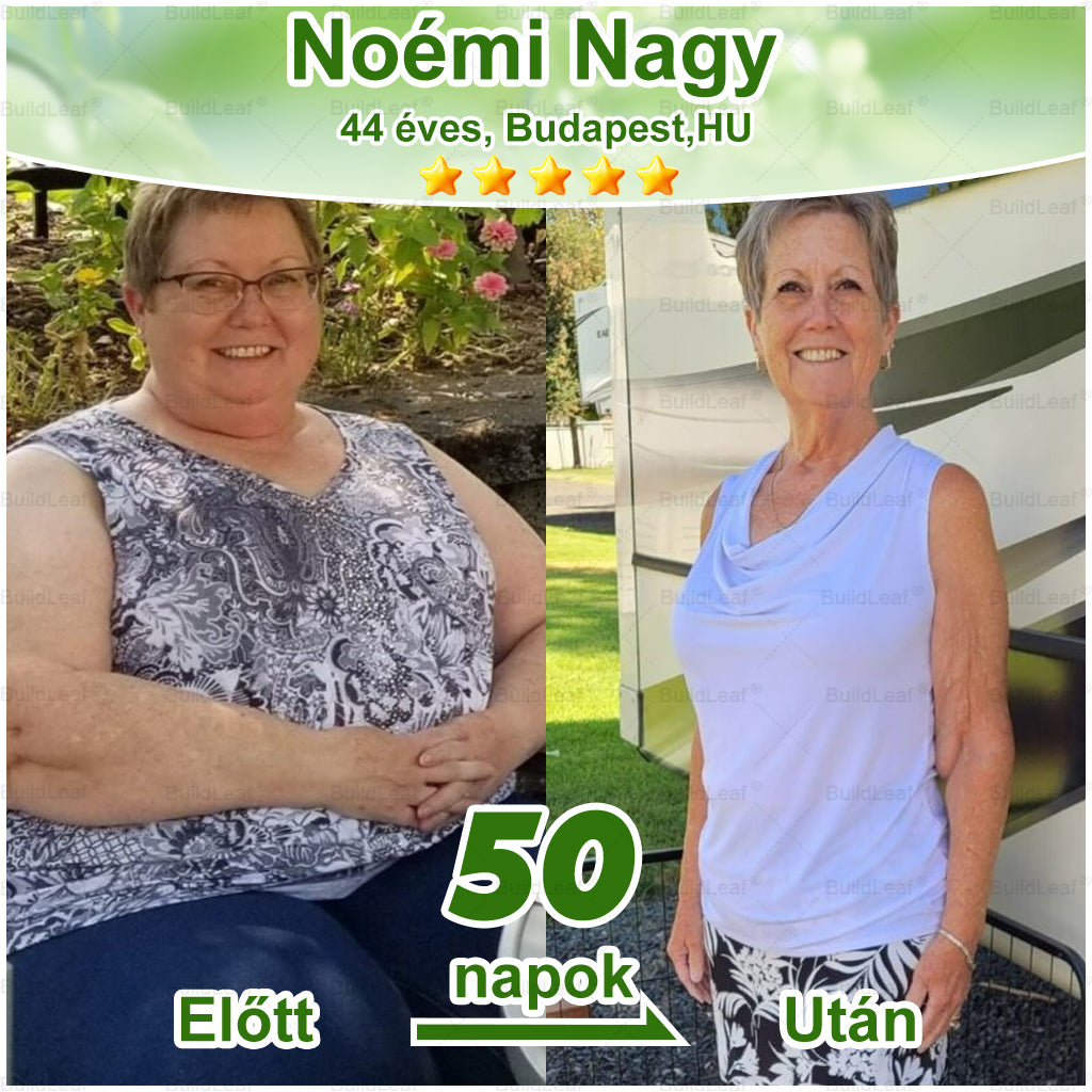 Az eredmények minden elképzelésemet felülmúlták: 145 kilóról 77 kilóra fogytam — összesen 68 kilót adtam le. A májam egészsége helyreállt, a testem könnyebb lett, mint évek óta bármikor, és a házasságom is szorosabbá vált, mint valaha. A BuildLeaf® nemcsak a fogyásban segített — hanem visszaadta az egészségemet, az önbizalmamat és az életemet.”— Mária Szabó, 55 éves, Győr, Magyarország