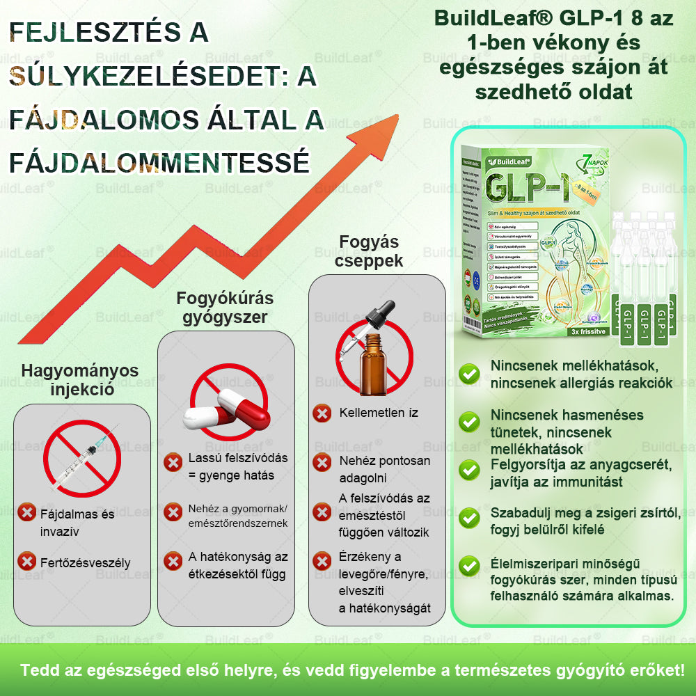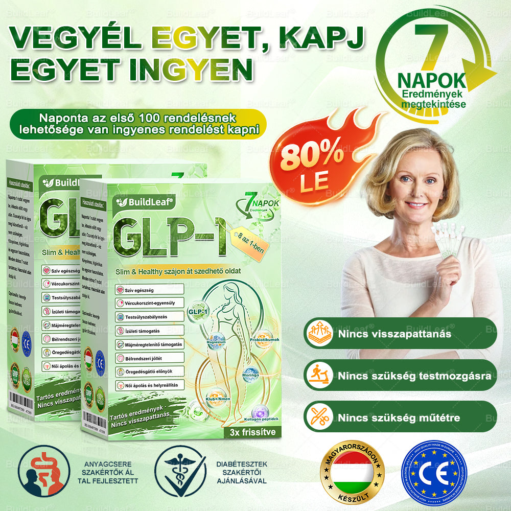 Hivatalos Bolt | BuildLeaf® GLP-1 8-az-1 Slim & Egészséges Oldat (Napi 1 adag · Eredmény 7 nap alatt),Segíti a fogyást, védi a szívet, szabályozza a cukorszintet, javítja az emésztést és az ízületeket — miközben feszesíti a bőrt és növeli az energiát.