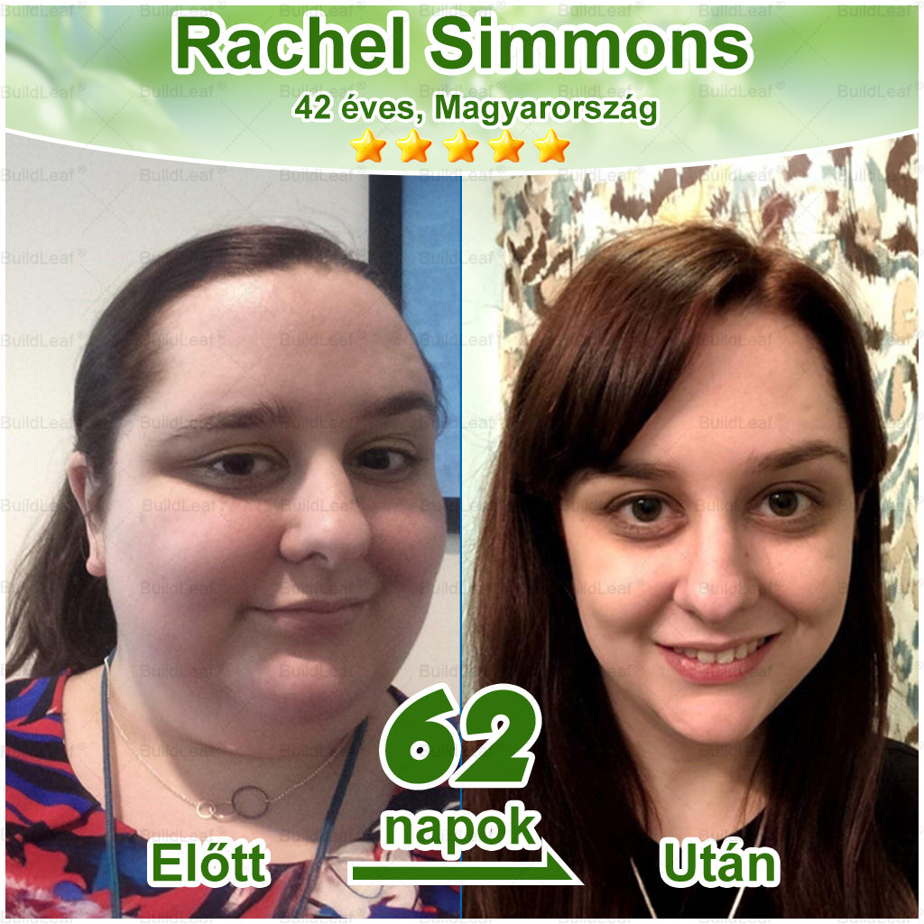 57 nap elteltével nemcsak fogytam, hanem a nyirokduzzanat is teljesen eltűnt a nyakamról, a női kellemetlenségeim teljesen megszűntek, és sokkal egészségesebbnek, frissebbnek tűntem. A BuildLeaf® nemcsak a fogyásban segített – hanem a problémáim rejtett okait is kezelte, és visszaadta a kényelmet, az energiát és az önbizalmat az életemben.”— Katalin Szabó, 42 éves, Debrecen, Magyarország