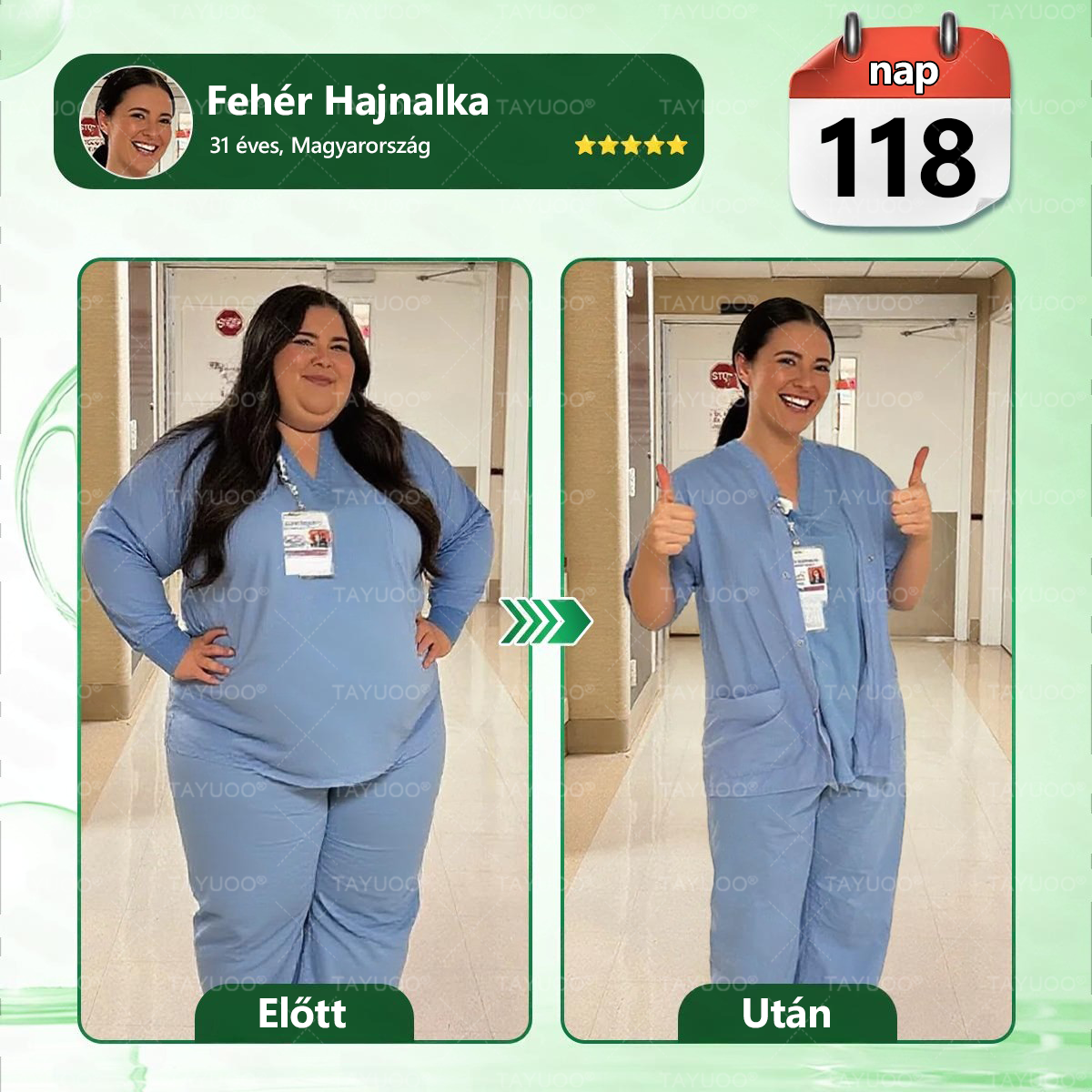 „Miután évekig dolgoztam kórházi gyógyszertárban, jobban láttam, mint a legtöbben, a hagyományos fogyókúrás termékek korlátait: lassú eredmények, a használat abbahagyása utáni könnyű visszahízás, és kevés támogatás az anyagcsere egyensúlyához. Hiába állítottam össze tudatosan az étrendemet és növeltem a mozgást, a súlyom mégis lassan, de biztosan kúszott felfelé. Semmi sem hozott valódi áttörést egészen addig, amíg el nem kezdtem használni a TAYUOO® Moringa · Berberin × NAD+ 10 az 1-ben Fejlett Nano Mikrotűs Tapaszt. Már a kezdetektől valódi változásokat tapasztaltam. Segített szabályozni az étvágyamat, lassítani a gyomorürülést, javítani a zsírfelhasználást, és helyreállítani az egészséges energiafelhasználást. Az első héten drámaian csökkentek az esti nassolási vágyak, és teljesen eltűntek a munka közben korábban gyakran jelentkező energiazuhanások. A második hónapra a különbség már vitathatatlan volt: csökkent a derékbőségem, stabilizálódott az energiaszintem és a hangulatom, a korábban a napjaimat irányító állandó fáradtság és sóvárgás pedig szinte teljesen megszűnt. Ami azonban igazán meglepett, az a bőröm állapota volt. A teljes fogyási folyamat alatt a bőröm feszes és rugalmas maradt – olyasmi, amit korábban soha nem tapasztaltam injekciós vagy kapszulás fogyókúrás termékek mellett. Ma egészségesebbnek, könnyebbnek és sokkal inkább irányítás alatt érzem a testemet és az életemet, mint valaha.” — leahhopehealth, gyógyszerész