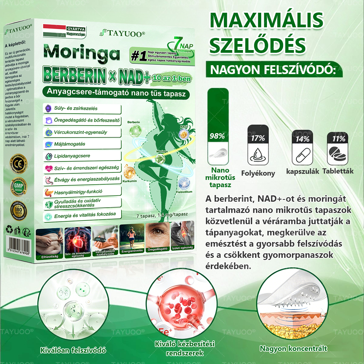 TAYUOO® Moringa · Berberin × NAD+ 10 az 1-ben Fejlett Nano Mikrotűs Tapasz: 98%-os felszívódási arány, átalakítja a testsúlyt, a májat, a bélrendszert és a bőr egészségét