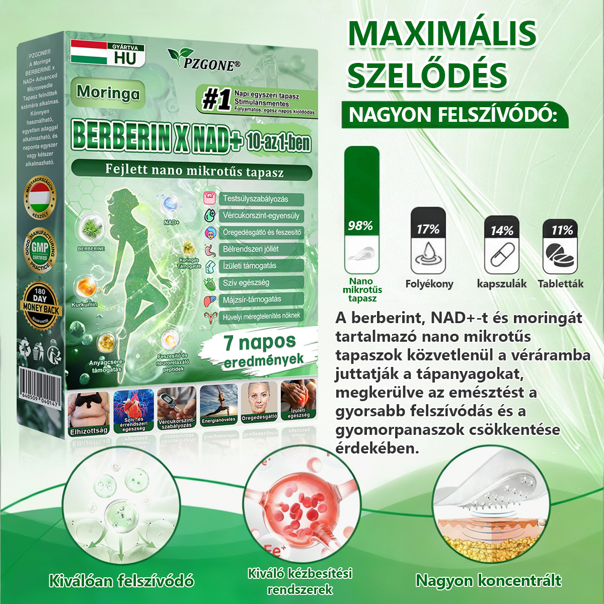 PZGONE®Moringa · Berberine × NAD+ 10‑in‑1 Fejlett Nanomikrotűs Tapasz: 98%‑os felszívódási arány, átalakítja a testsúlyt, a máj-, bél- és bőregészséget
